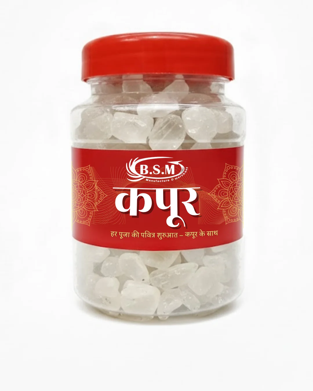 Bring divine purity to your pooja rituals with BSM Pure Camphor, made by Brijwasi Satsang Mandal Manufacture & Merchant (B.S.M). 100% natural, long-lasting, and perfect for aarti, meditation, and positivity at home.